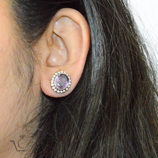 Tiny Amethyst Studs Sterling Silver Oxidized Polish