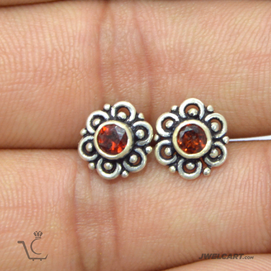 Natural Red Garnet Tiny Silver Studs oxidized polished