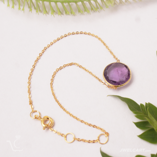 Natural Amethyst Round cut Gemstone Chain Bracelet 18k Gold vermeil