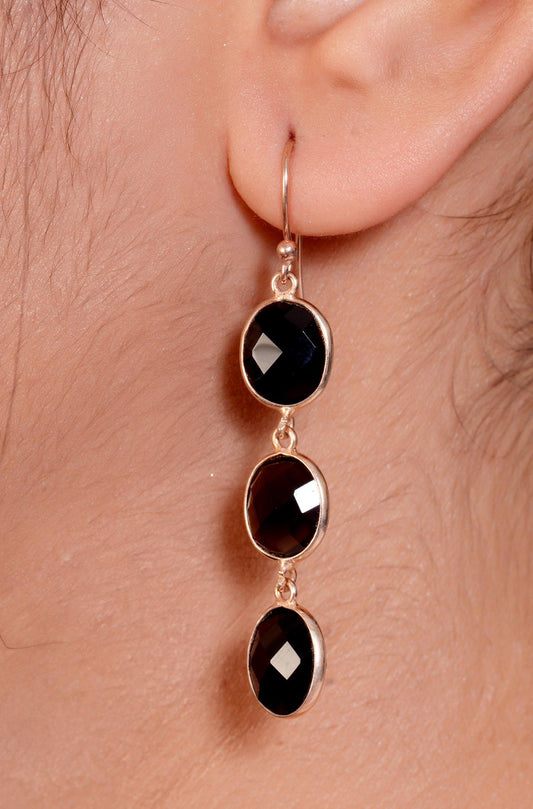 Black Onyx Silver Gold Plated Long Dangler Earring