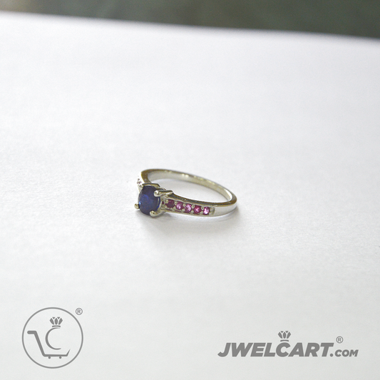 Blue Sapphire & Pink Ruby Cubic Zirconia Silver Ring