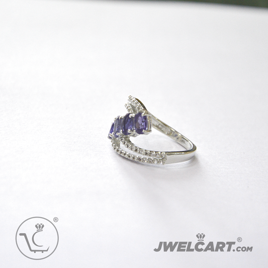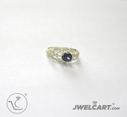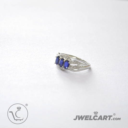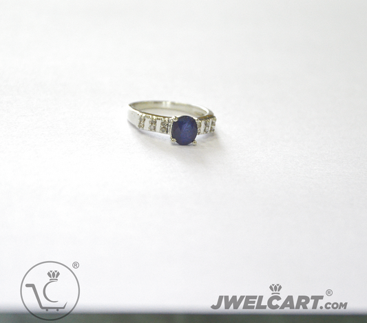 Sapphire Diamond Solitaire Silver Ring Band