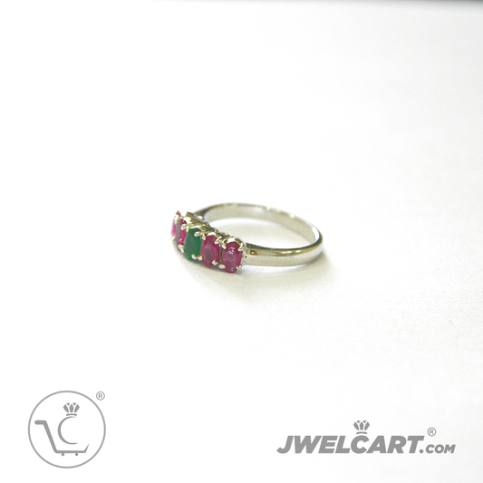 Ruby Emerald Oval Cut Silver Band