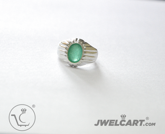 Emerald Oval Cut Silver Band