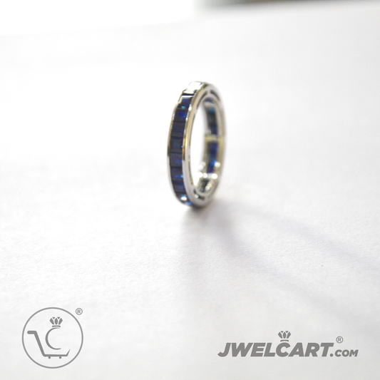 Sapphire Baguette Cut Silver Eternity Ring Band