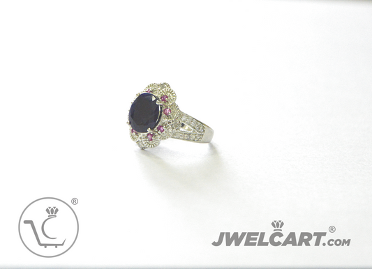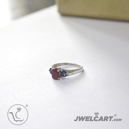 Pink Ruby and Blue Sapphire Cubic Zirconia Silver Ring