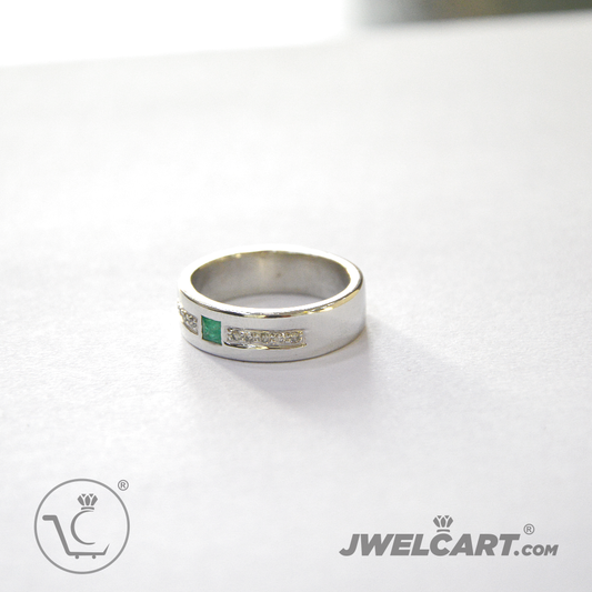 Natural Emerald Diamond Silver Band