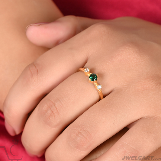 Emerald Stone 22k Gold Plated Silver Stag Ring