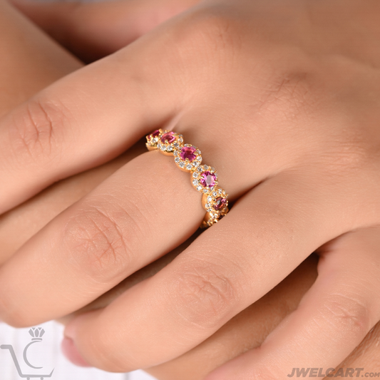 Pink Ruby Cubic Zirconia 22k Gold Plated Ring
