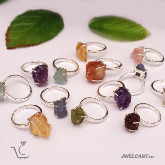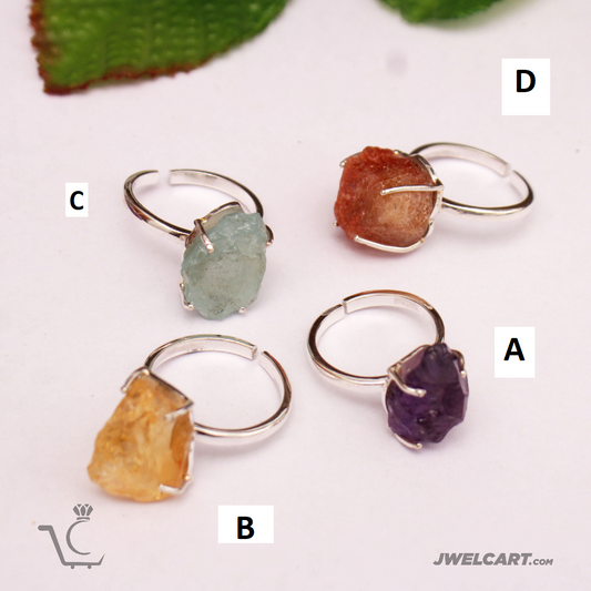 Raw Rough Gemstone Crystal Sterling Silver Ring