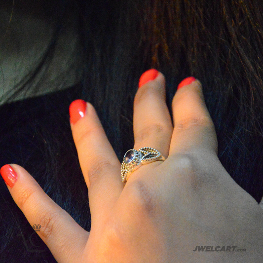 Amethyst Twisted Wire Pattern Silver Band Ring