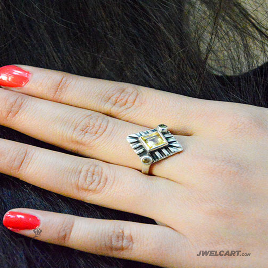 Citrine Gemstone Black Polish Sterling Silver Gemstone Ring