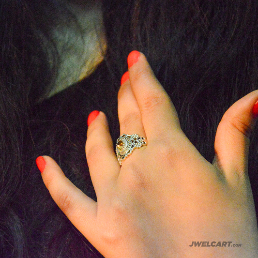 Natural Smoky Quartz Pear Cut Gemstone with Cubic Zirconia Silver Ring