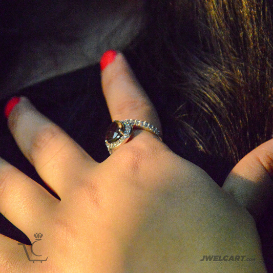 Natural Smoky Quartz Oval Cut Gemstone with Cubic Zirconia Silver Ring