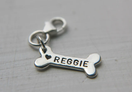 Sterling Silver Dog Bone Charm, Personalized Pet Name Jewelry