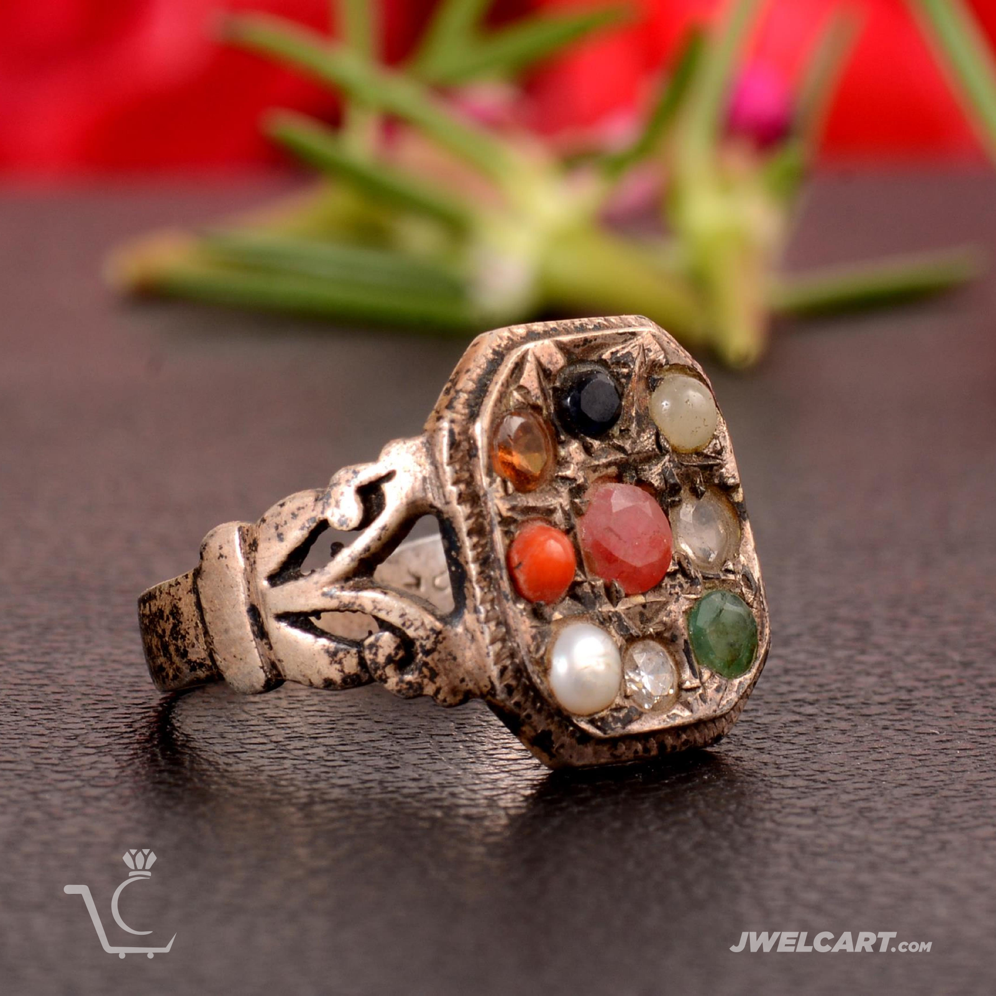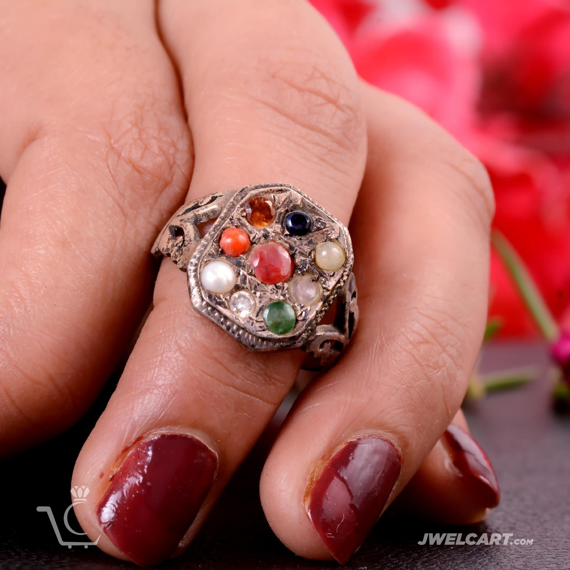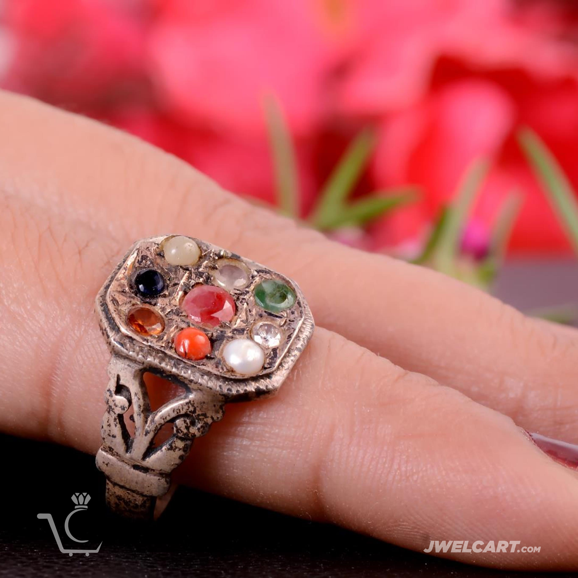 Navratna Ring Sterling Silver Natural Navratna Gemstone Ring